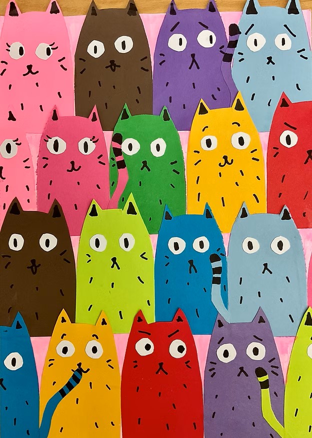 "Stacks of cats represent how cats have lots of emotions, just like how people do."